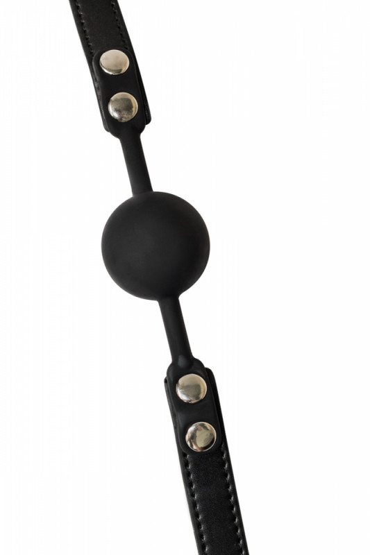 Силиконовый черный шарик на черном ремешке из экокожи. Ремешок регулируемый. Застегивается на затылке